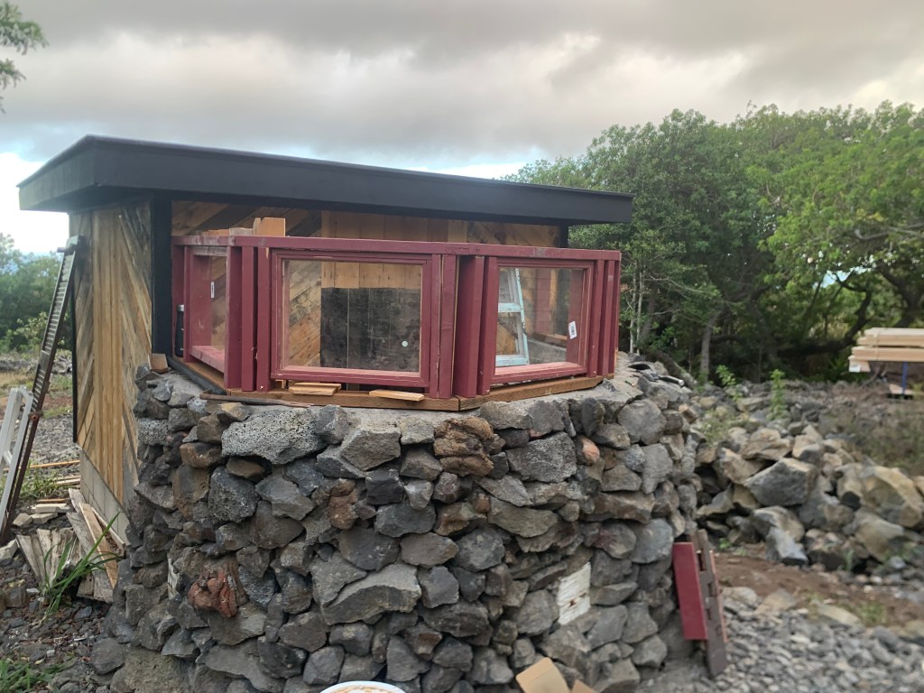 I had picked up glass at Lowes on the 29th when we got on the island, and made quick work of putting them together. Then I began installing them into the walls.