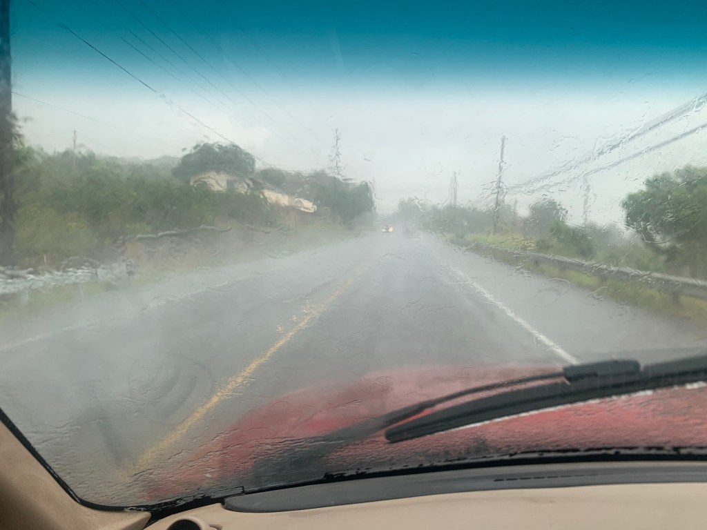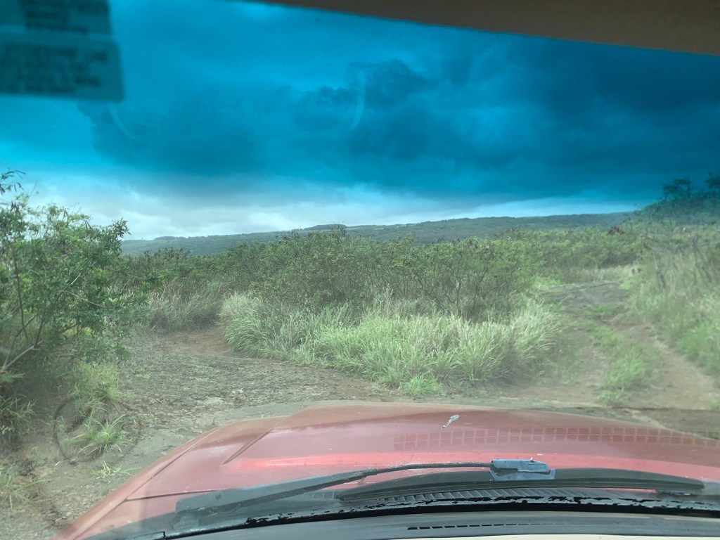 On the way out of Kona.we were met with some very heavr rain showers, but as we drove down the coast, the rains quit and we had dry roads.