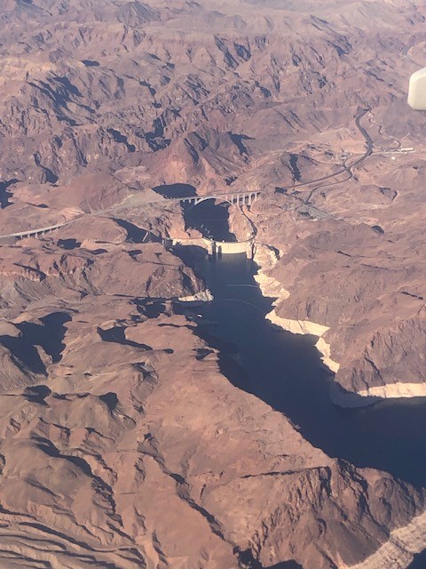 We flew over the Arizona desert north of Phoenix. We had a terific view of Hoover Dam, Lake Mead, and the highway bridge over the dam.