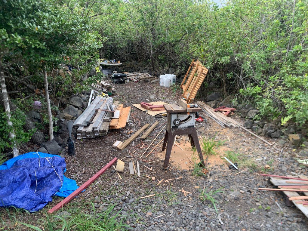 I set up the table saw and got the generator started so I could make window frames for the shower walls.