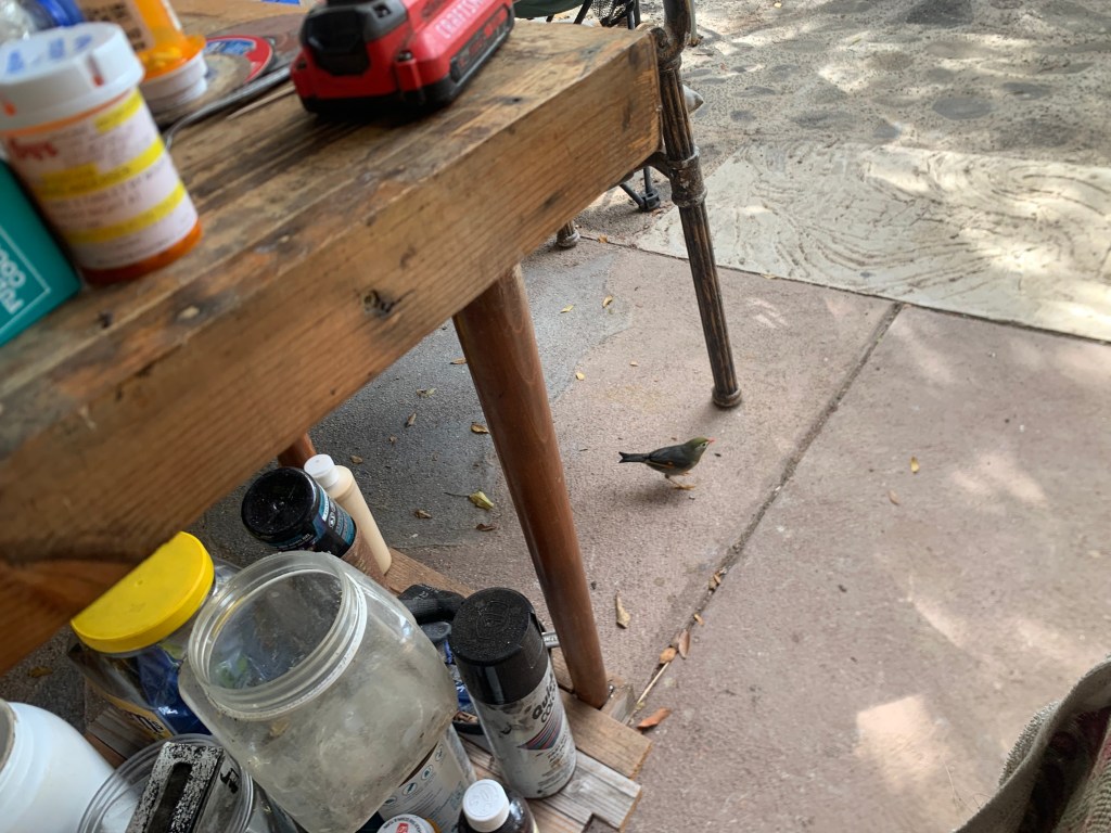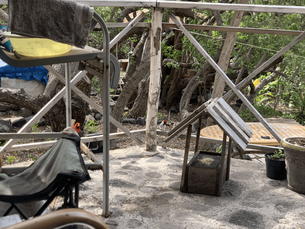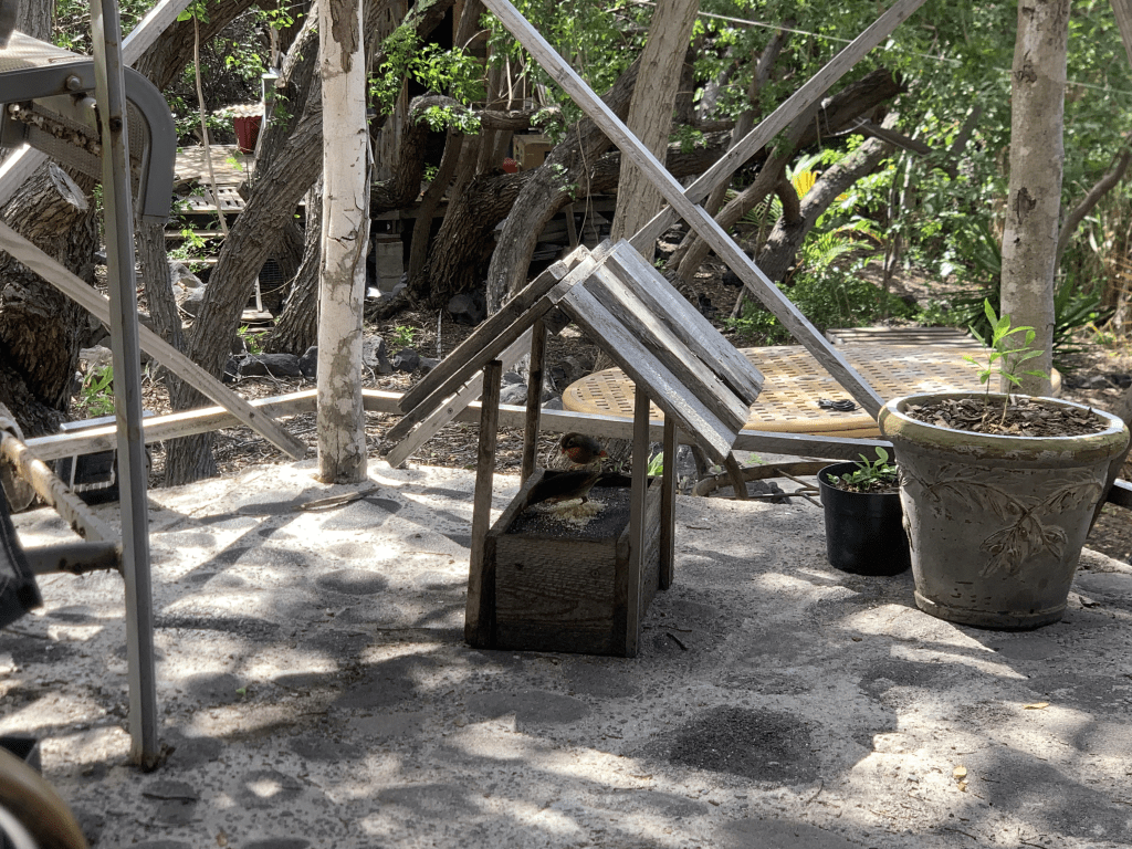 There is one little honey creeper who is very bold. He/she will come all the way up into the gazebo when I am there, looking for something to eat.