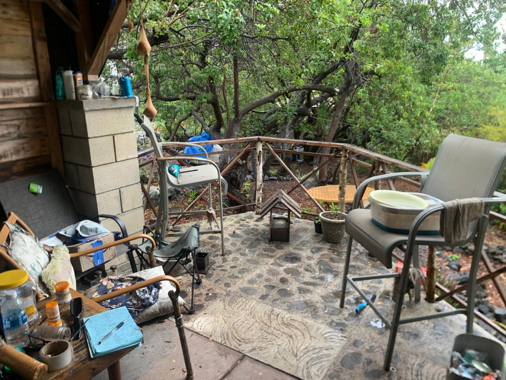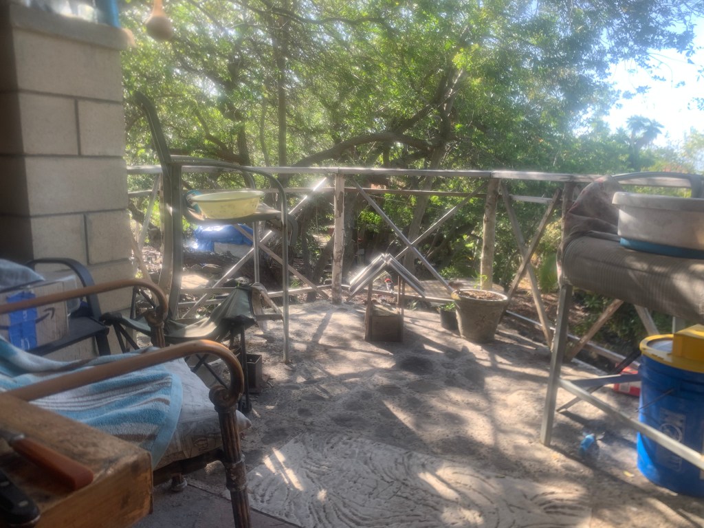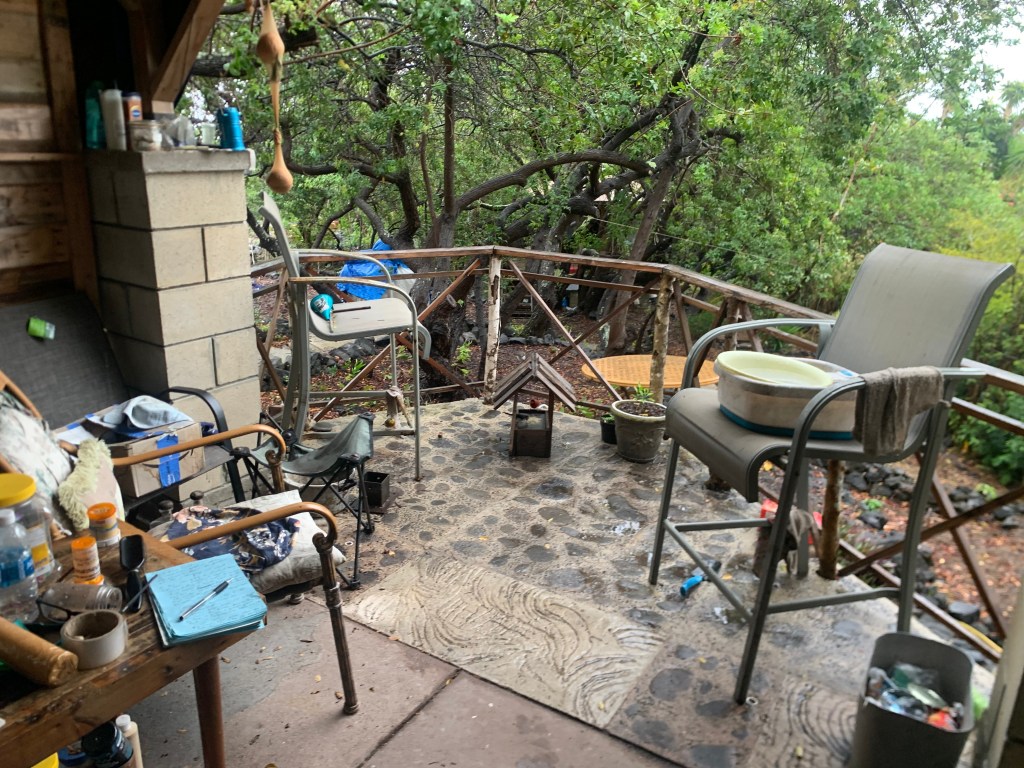 When I was here a month or so ago, the neighbor told me that his wife had gone to the mainland to be closer to her two tenaged boys who live there with their father. Maybe he has returned to the mainland as well, and maybe he has “gone walkabout” as the aboriginals in Australia would say! But, their property looks abandoned, like he went to the grocery store, and hasn’t come back yet. Wierd!