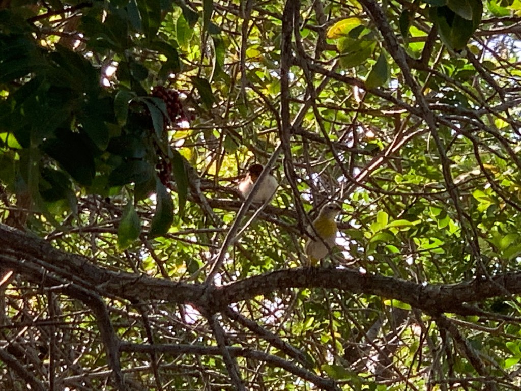 I have seen these small yellow birds – about the same size as the honey creepers and the red headed cardinals – around the neighborhood, but I have not seen them here at my property.