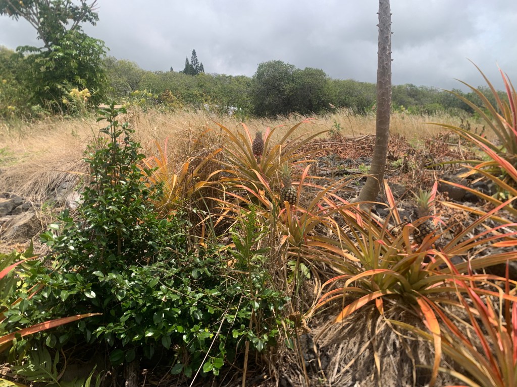 Over by their house, there are about twenty small pineapple plants still in their pots that I will water as well.