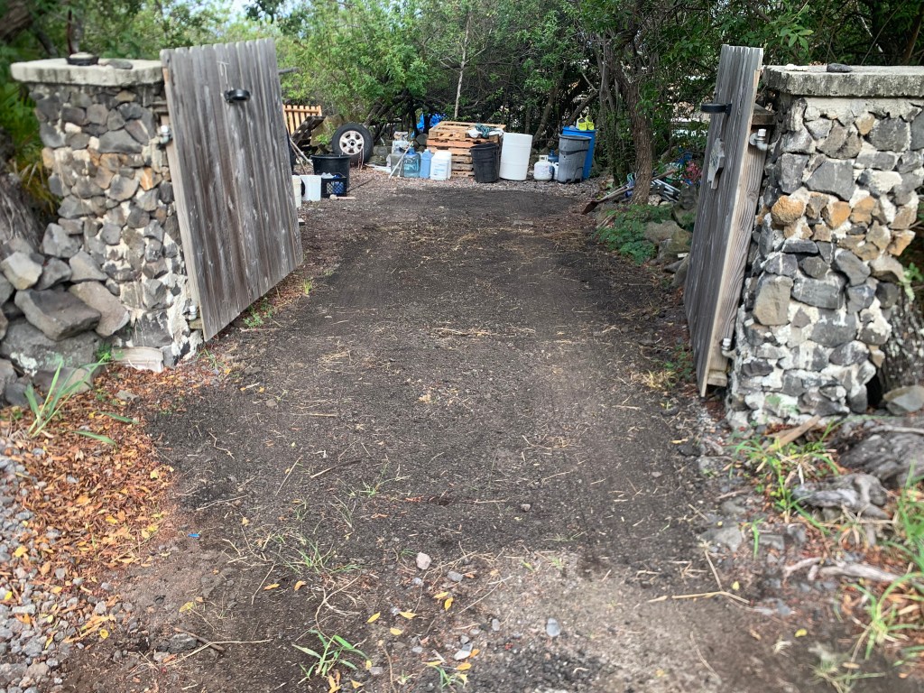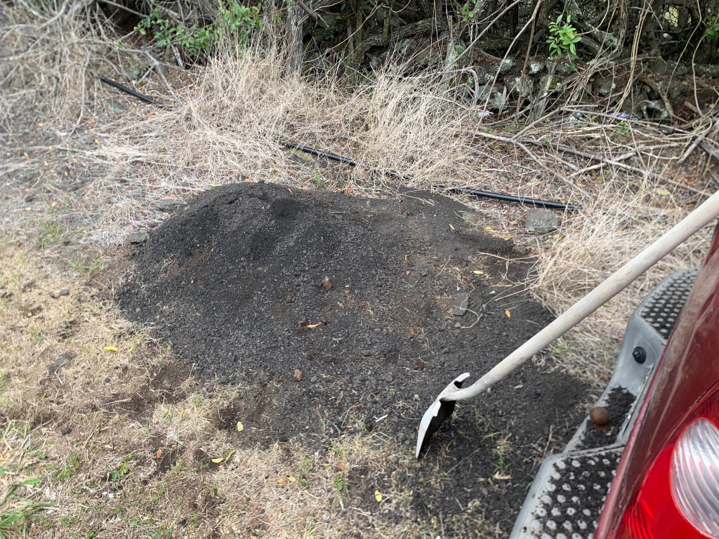 The first two loads, I spread in the driveway at Holowai. This makes it much smoother and much easier to walk on.