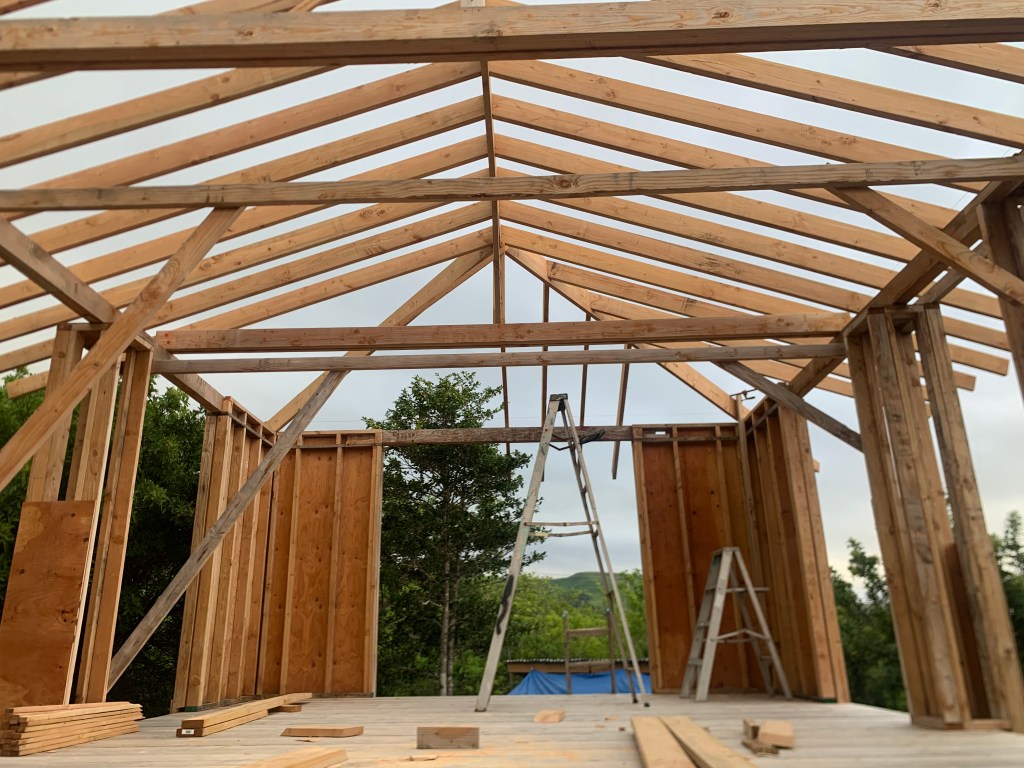 After taking the water bottles out of the truck, I cut and installed two more rafters. Slow and steady wins the race!