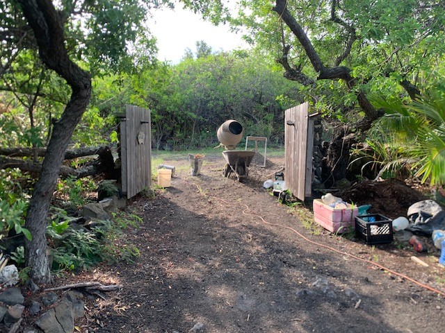 At the corner of Palaoa Road and Amepela Road, I started a project yesterday to install a street sign similar to the one I created near the property at the end of Holowai Street. I had cut back the vegetation and dug a footing hole. Then I placed rocks around the top of the hole as a form for concrete to create a base for the sign post. Today, I loaded some sand and gravel into my truck along with some cement and my wheelbarrow and shovel. I drove over to this intersection and found that someone had taken all my rocks! There were a dozen or so ranging from the size of a grapefruit up to the size of a basketball – they were large rocks. Why would someone take these?