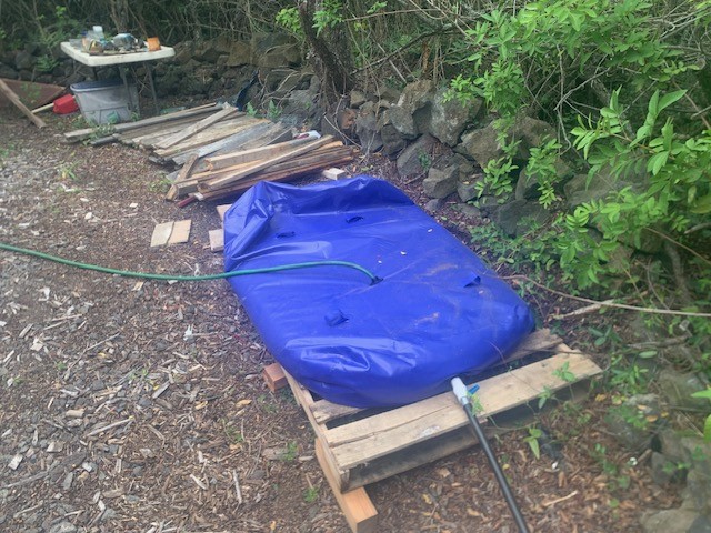 Put water bladder and some one gallon jugs into the truck and went in to town. Bought 2 bell peppers and a papaya at the farmers market and stopped at the transfer station for water. On the way back, I stopped at Ahi and watered the plants there. At Holowai, I drained the bladder into the other bladder that is in the driveway.