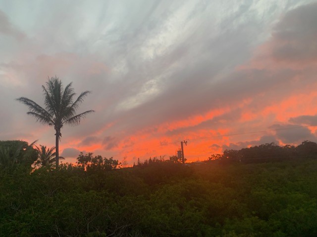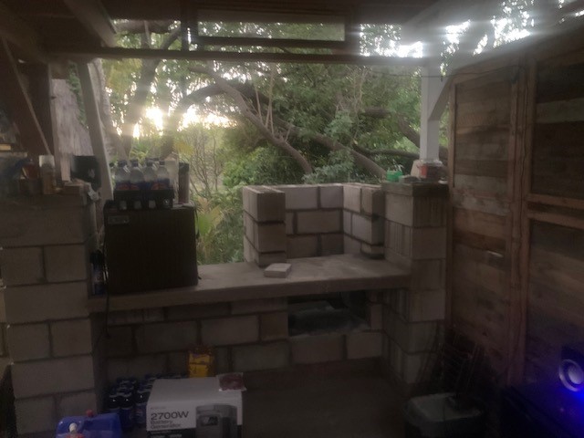 I drive down town Na’alehu – still no phone service. I get propane and water – still no phone service. I return to the property – still no service. It is 2:30 PM. I unload the truck and take a shower. The water is warm, not hot, and not a lot of pressure. It still smells like PVC glue, but I have a good shower none the less!