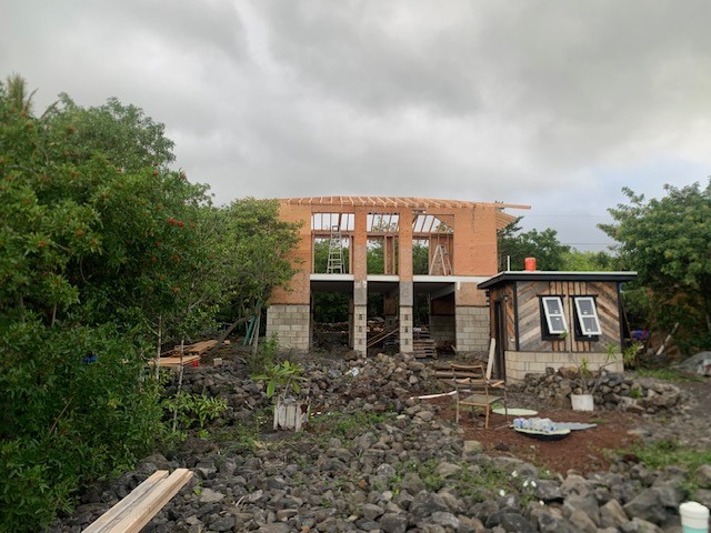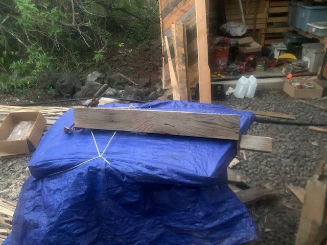 Started the generator and worked on the headers over the three door openings on the mauka side (the side away from the ocean, or the side facing the mountain).