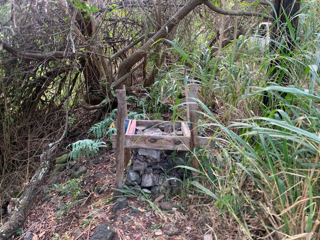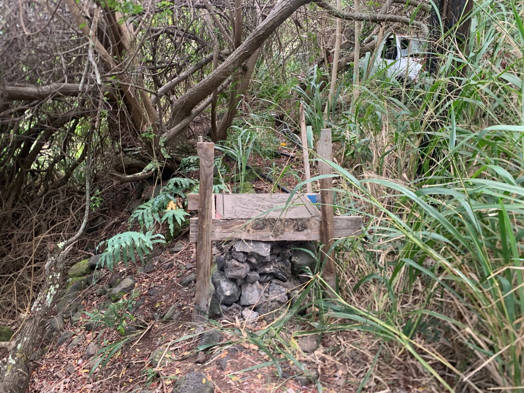 During my last trip, I had built a rock column at the front west corner of the Ahi property.