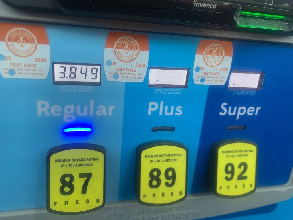Where I fill up the truck gas tank for the low price of $3.84 per gallon! Two weeks ago, when I left Arizona, I had just paid $2.49 per gallon.