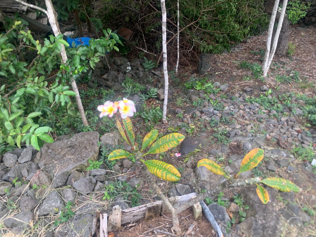 My plumerias are still blooming. They started to bloom a week before I left to return to Arizona in December. Unfortunately, I cannot eat plumeria flowers!