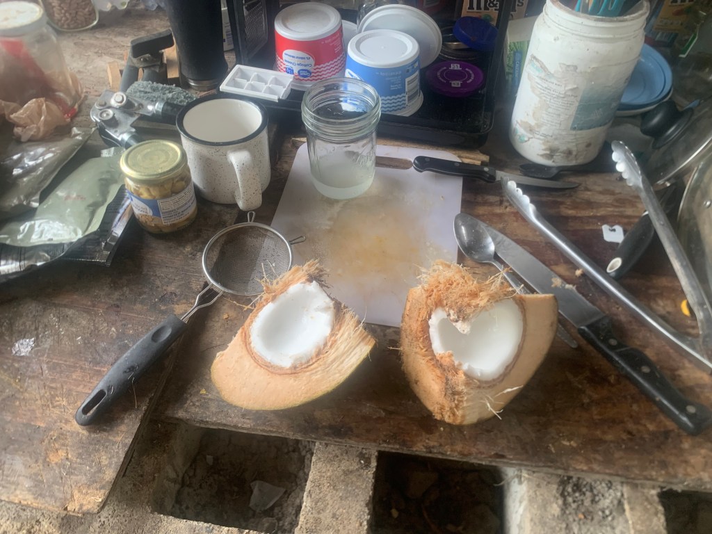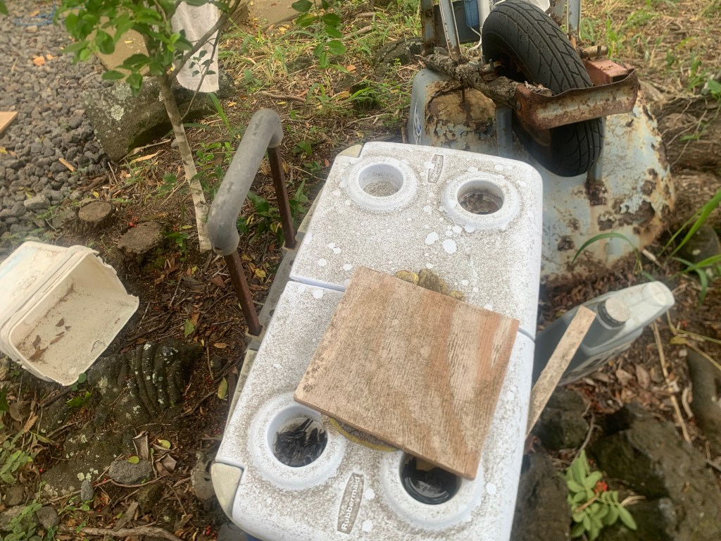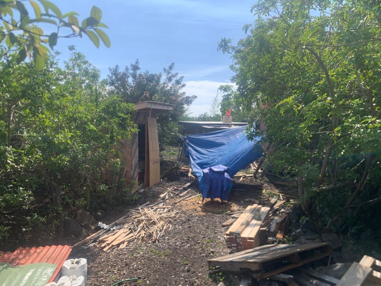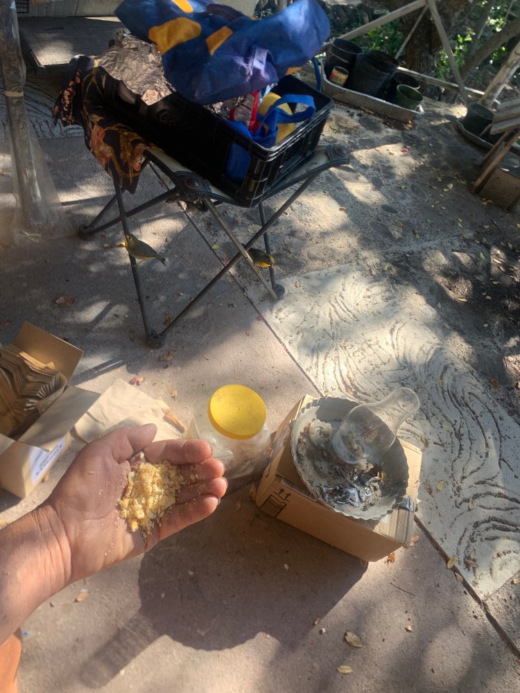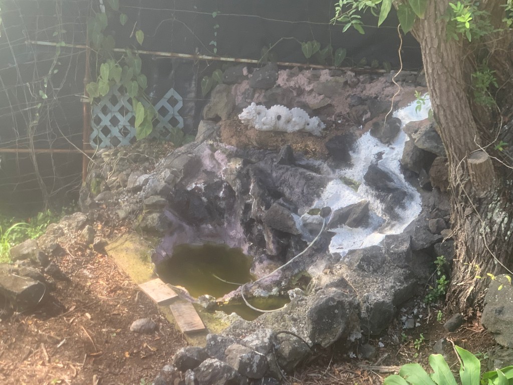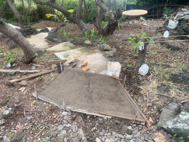 The plants on the lanai have a fine dusting on their leaves, and everything in the gazebo/kitchen is also covered in it. This forces me to wash any plate, pot, pan, glass, or piece of silverware before using it!