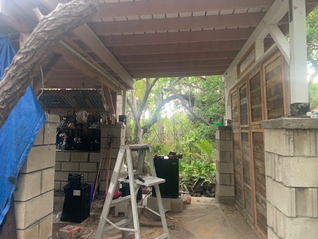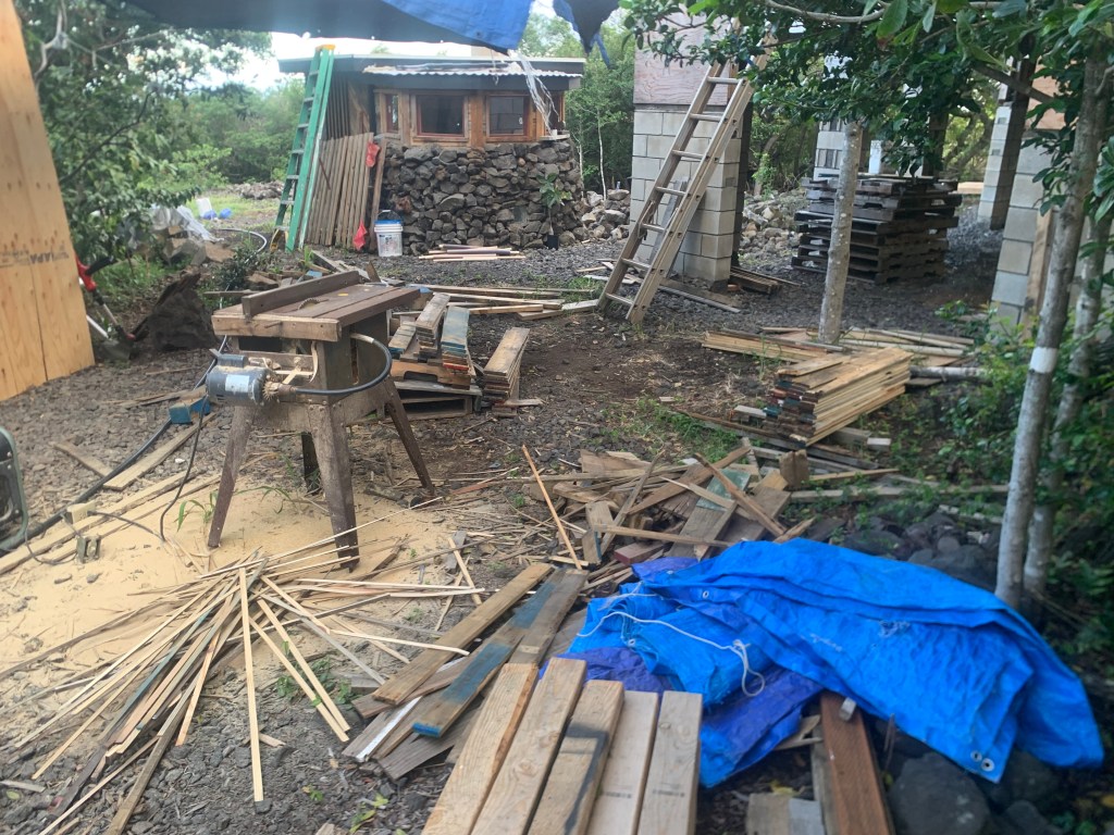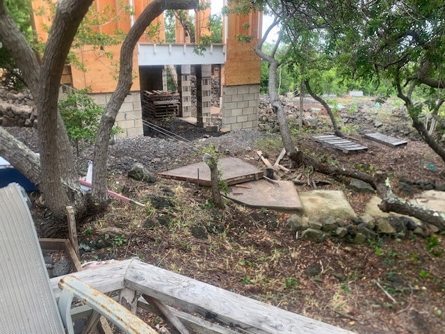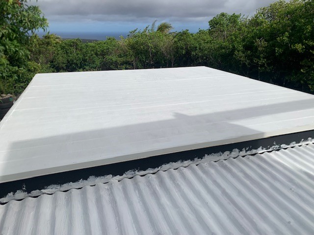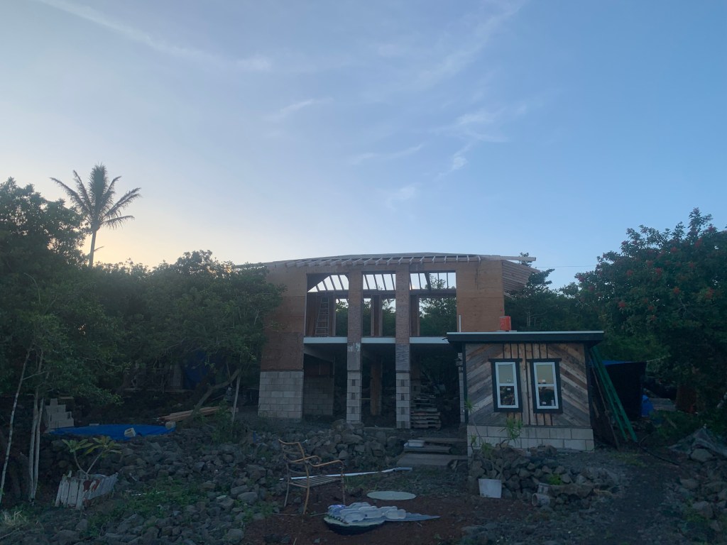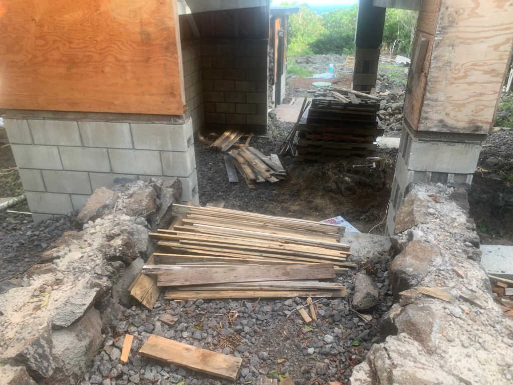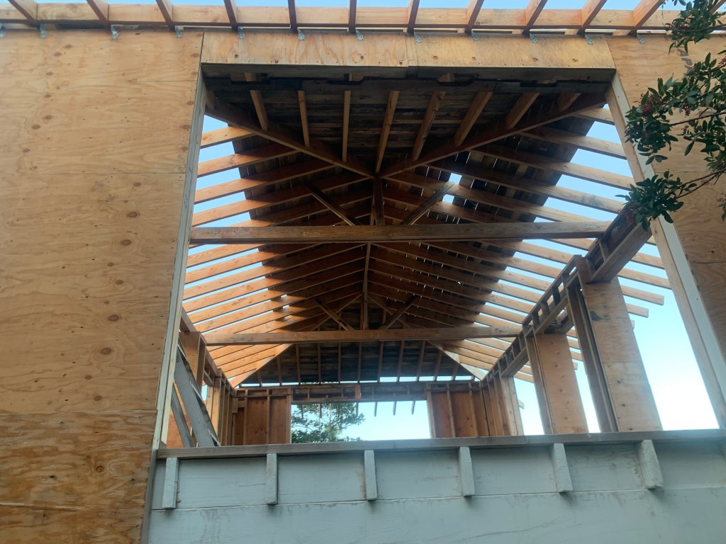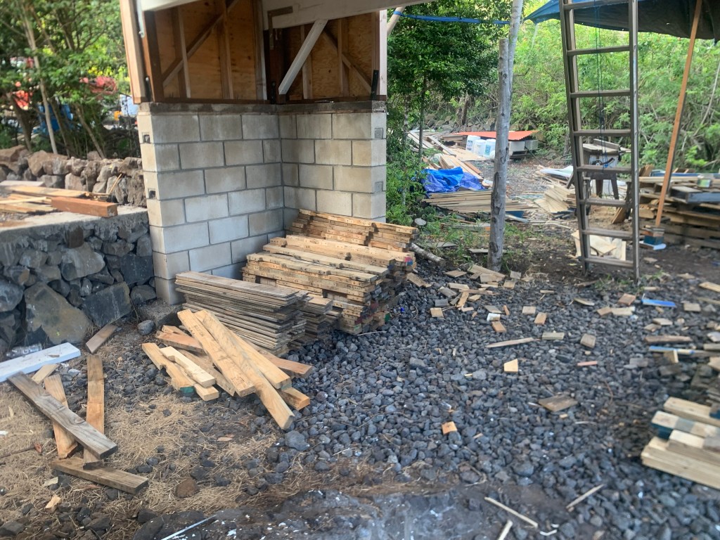 The overhang on the makai side ( the side towards the ocean) is ready for me to cut the rafter tails all the correct angle for installing the fascia! They are all the original square cut and need to be a plumb cut so that the fascia is not on an angle! Also, they are not the same distance out from the wall and need to be so the fascia is straight up and down! This will make it easier to install gutters.