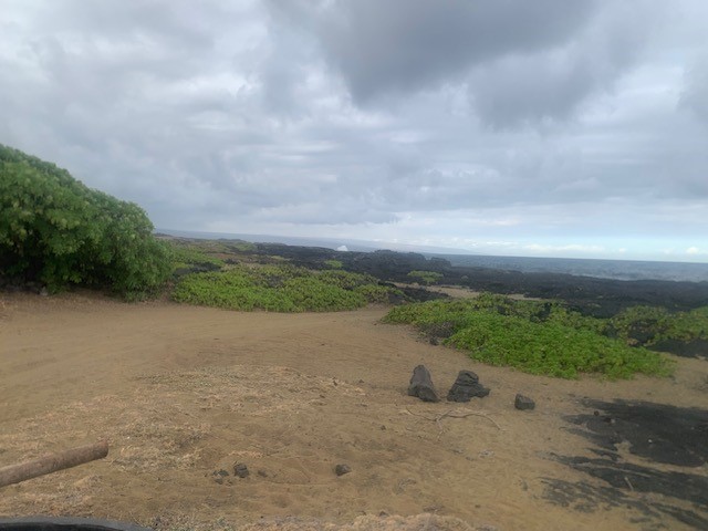 Another e-mail from the USGS leads to another road trip! So, off I go. Past the town of Na’alehu, and down to the overlook at the ocean. As I look towards Kilauea, I think I can see the smoke from the eruption – – – of course, it might just be my imagination!