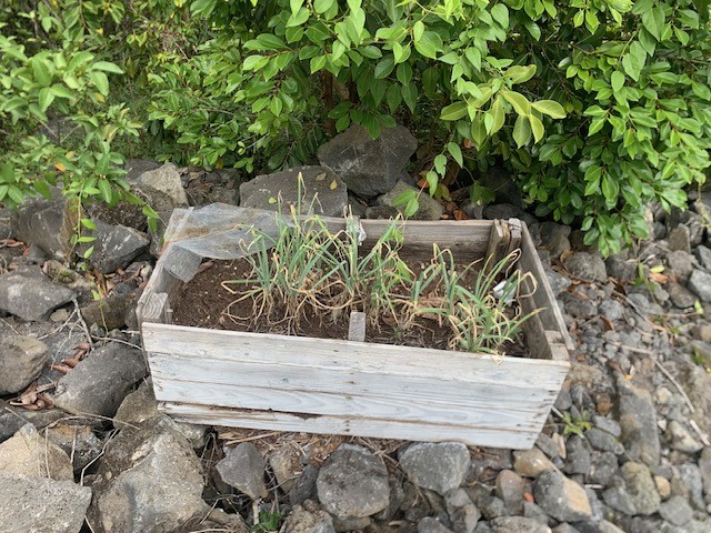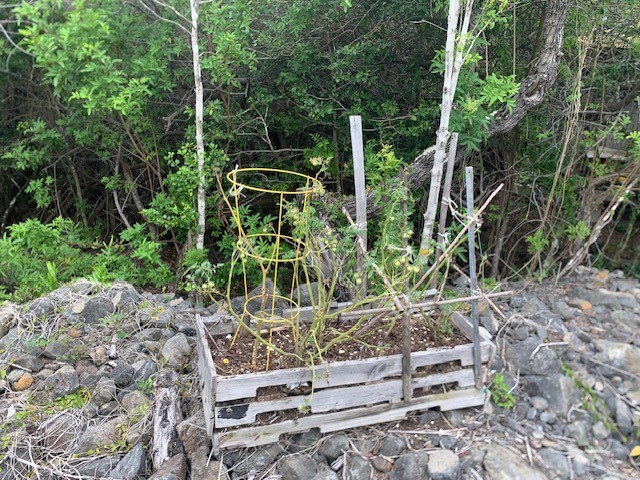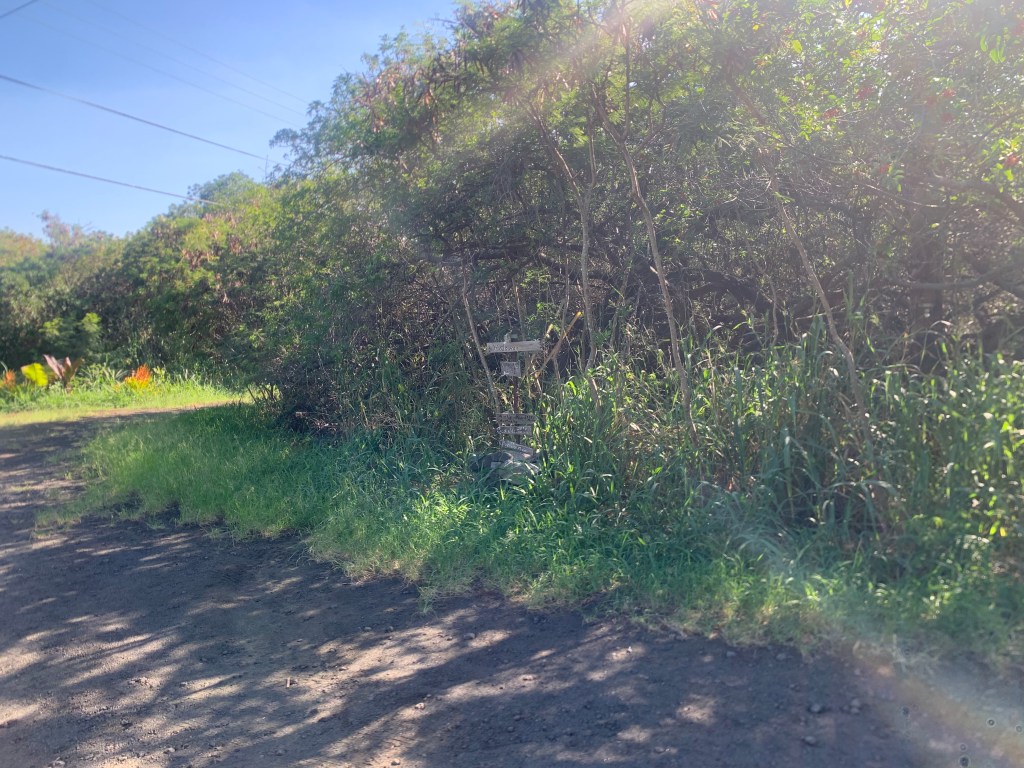On my last trip, I had installed a street sign here! Two wooden signs attached to a metal pole, imbedded in concrete with large rocks. Someone has stolen the whole thing! I wonder why?