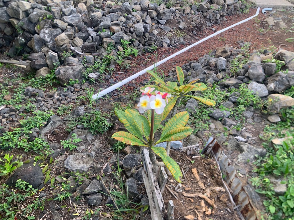 The plumeria is blossoming very nicely. the other branches look like they too will blossom . . . most likely, when I am not here!