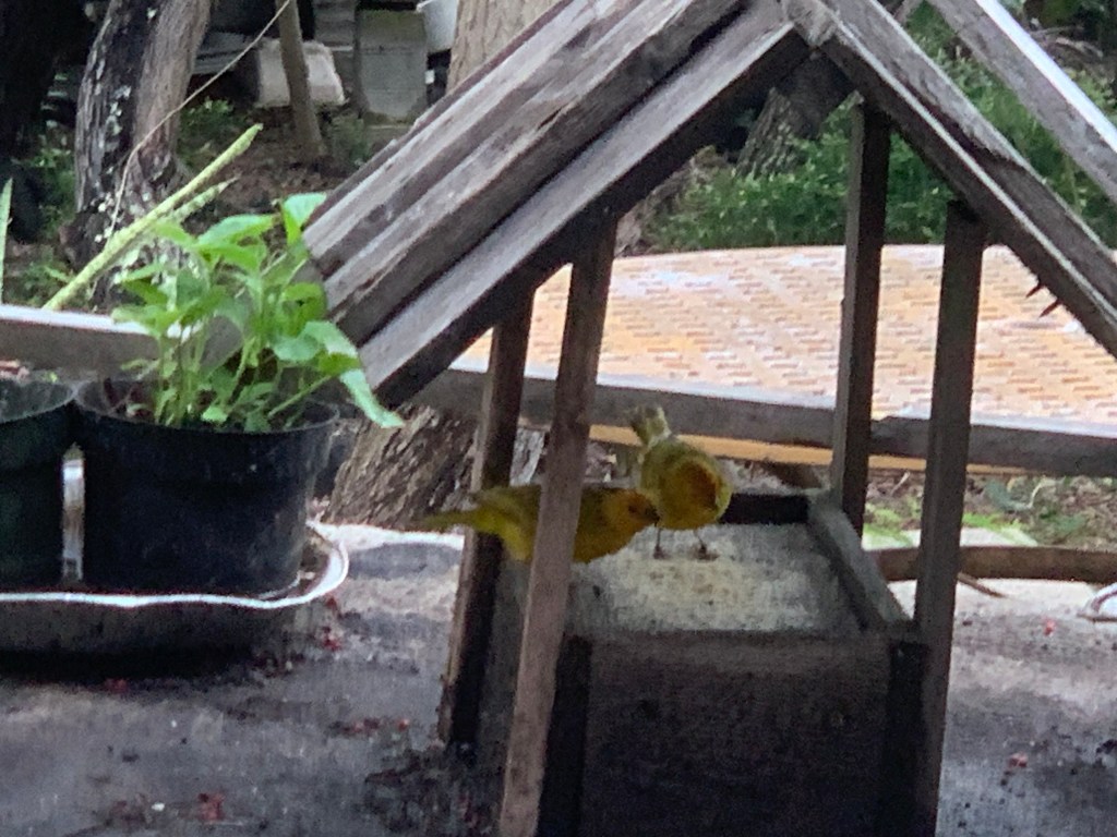 As I was making breakfast, the little green birds were coming and going, past me. Probably trying to get my attention so I would put something in the bird feeder.