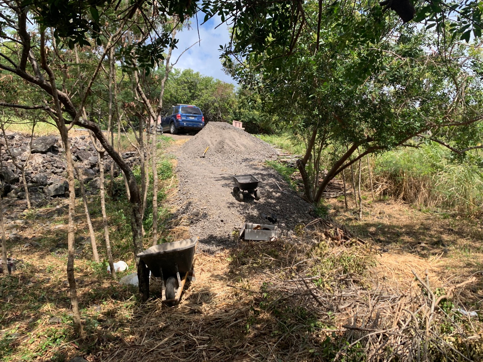 Wednesday The load of 2 1/2″ minus sand and gravel arrived at the Holowai lot around 7:30 AM. I had the truck driver dump it just outside the double gates. It extended from the rock column supporting the gate to the roadway where vehicles travel. There is room for vehicles to get past, but I probably shouldContinue reading “September 6, 2023”