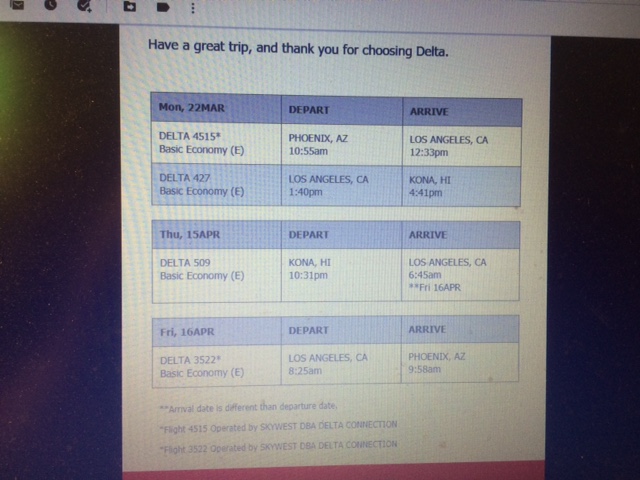 I’m headed back to Hawai’i. Leaving on the 22nd of March, returning to Arizona on April 15. I like the times of these flights. I will arrive in Kona in the late afternoon instead of late at night like my last trip. Also, the return trip is at 10:30 PM and is a red eyeContinue reading “The Adventure Continues . . .”